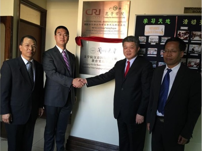2015年9月25日,时任yl6809永利校长王乘一行6人访问了肯尼亚海外华语中心,与CICCK董事长高玮先生举办座谈,充分肯定和赞扬华语中心取得的成果。双方一起为yl6809永利汉语国际教育专业硕士实习基地揭牌。这标志着yl6809永利汉语国际教育肯尼亚实习基地正式挂牌成立,双方合作进入了一个更加稳固的阶段。