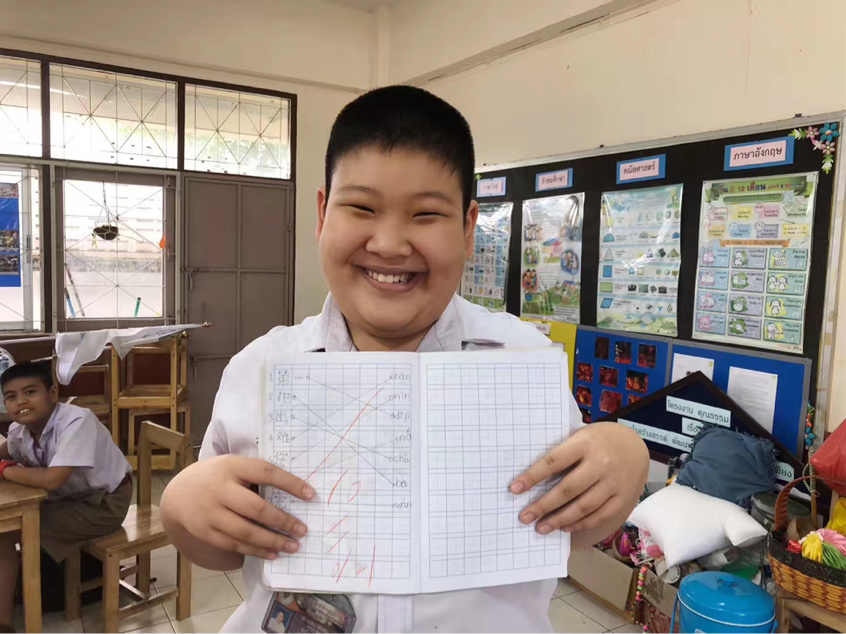 我负责四年级五个班,二百三十名学生的汉语教学活动,给我留下最深刻印象的不是YCT考了满分的孩子,也不是让所有老师头疼的“调皮蛋”,而是大家口中那个“特殊的孩子”。学校里特殊的孩子有不少,因为我们是泰南少数接收智障儿童的慈善学校。