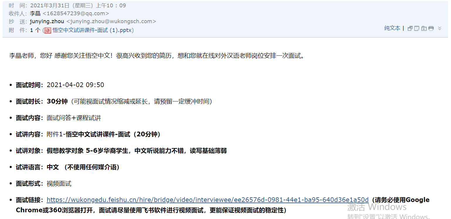 内心有些许焦灼,直到第二周的周四,我终于收到了面试通过的邮件,然后忍不住第一时间分享给了室友!第一关已过,接下来的难关也要迎难而上,乘风破浪!