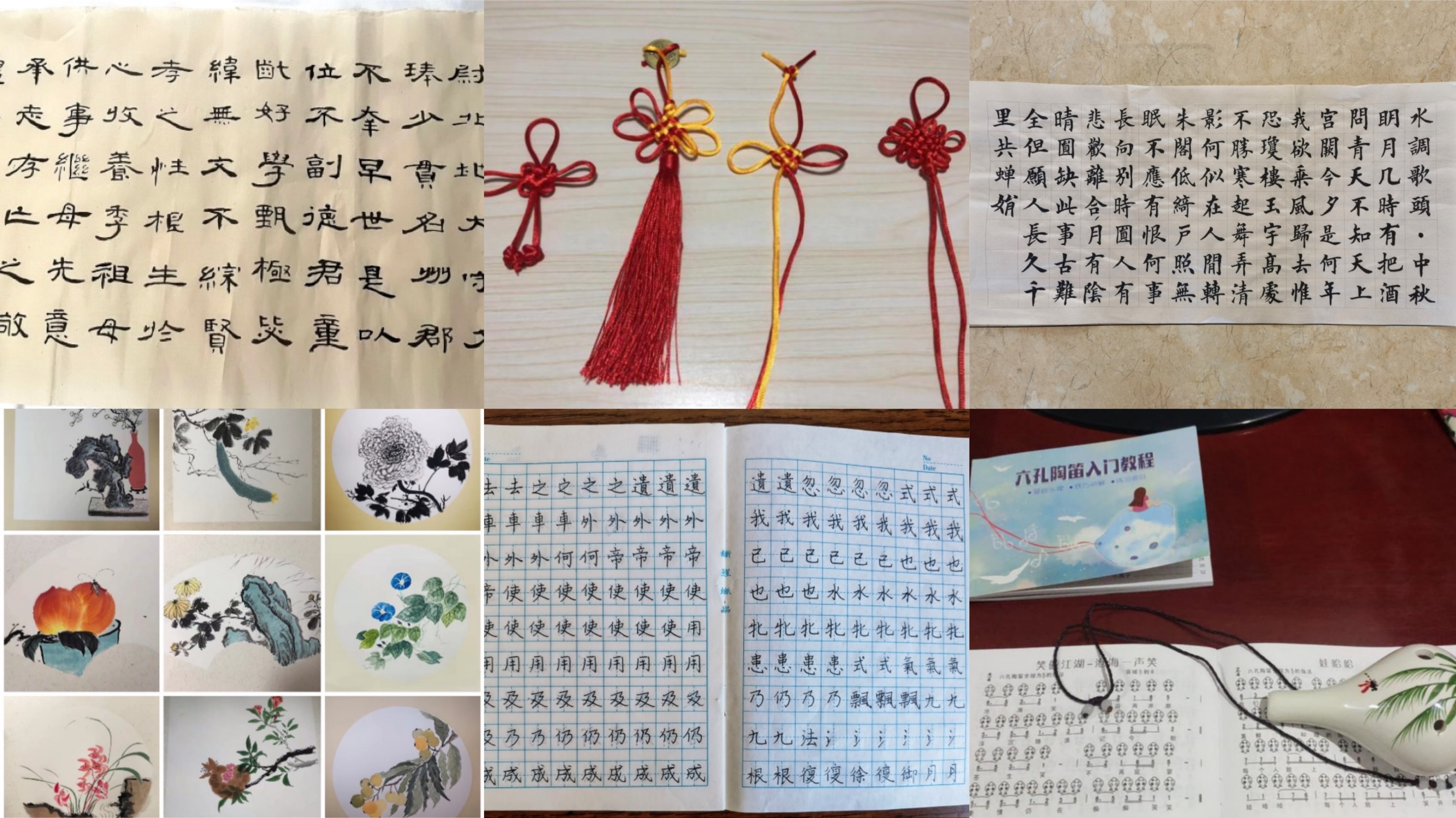 中华文化博大精深,只有自己真正了解并掌握一门中华才艺,才能更好地向全世界介绍中华文化瑰宝。假期中,同学们都积极参加中华才艺训练。张竹芮同学说:“复试时就看到有同学带着古筝,还听到二胡的声音,甚至还看到我从来没见过的民族乐器。”王萌琪同学说:“这个假期我要好好利用起来,准备一首民歌表演,在开学后的才艺汇演中展示给大家。”同学们的中华才艺涉及茶艺、古典舞、中国画、民歌、古筝、陶笛、书法等。