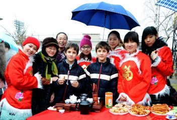 孔子学院的生活是多姿多彩的,除了日常教学活动之外,我们还会组织、参与各种中乌文化活动。中秋节,我们会为学生讲述“嫦娥奔月”的故事,与孩子们一起分享月饼;春节,我们给学生讲过年的习俗,大家一起“守岁”“吃年夜饭”;“中国日”我们一起踢毽子、夹豆子、投壶、猜字谜……谢肉节,我们受当地政府邀请,将中国传统美食“麻花”“馓子”等端上乌克兰街头;“大学国际文化日”,我们的茶艺、民族舞蹈表演总能赢得满堂喝彩。我们的工作地点不再限于卢甘斯克市州,周末坐上火车前往顿涅茨克州,为当地的小学生奉上一堂精彩的中国文化课,暑假会去黑海边为孩子们组织一场别开生面的“中国文化体验营”。那时候,“中国”“孔院”“汉语”等关键词经常出现在当地的媒体报纸上。工作是忙碌的,生活是快节奏的,但看着孔子学院学生数量不断增加,大街上不时有人善意地问着“你好”,我便情不自禁地感慨:多么幸运,这般渺小的我竟有幸从事如此伟大的工作。