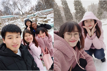 在兰州大学生活期间,我过得非常开心,看到并学到了很多从未体验过的东西。我认识了非常好的朋友,我们总会一起玩,一起去吃饭,一起打羽毛球,一起唱卡拉OK,一起做饭。还记得有一次,朋友叫我出去玩雪,我特别激动,因为我们泰国地处热带,气温高,这里没有雪。朋友看到了我兴奋的表情,他们也非常高兴。那段时间我们真的很开心。